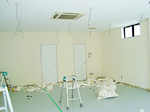 当初、天井の塗装工事、クロス貼替、床タイルカーペット貼りというものでしたが、 お話を聞くうちに、当社でお手伝いできることばかりでしたのでご用命頂きました。